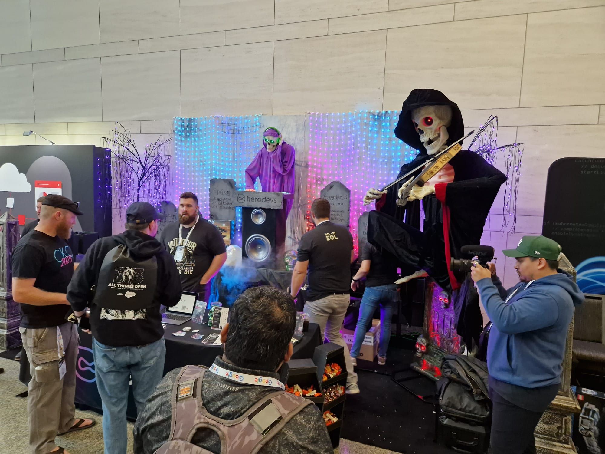 I joined the conference on day two, starting with a wander around the exhibition hall. HeroDevs stole the show with their incredible Halloween display.