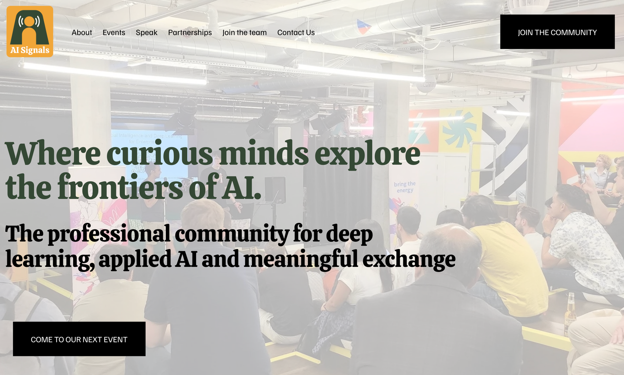 I am a founder and long time organiser at the AI Signals, hosting talks on topics like fairness in AI, the developer experience, and sustainable AI. You can find out more on our website aisignals.org.uk