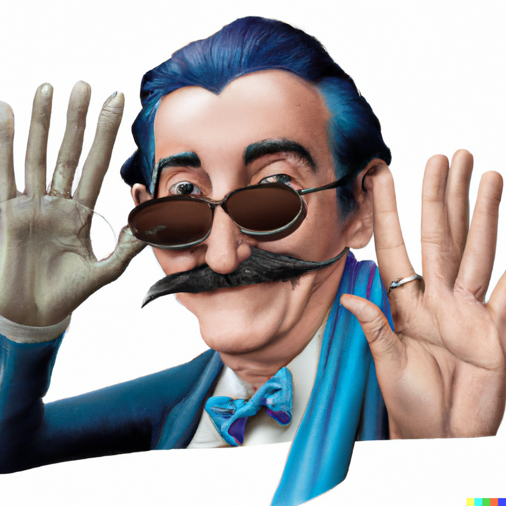 salvador dali waving to the camera photo realistic