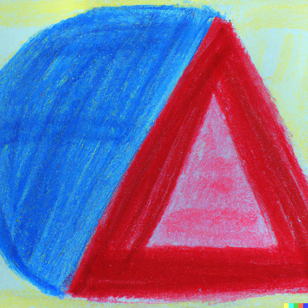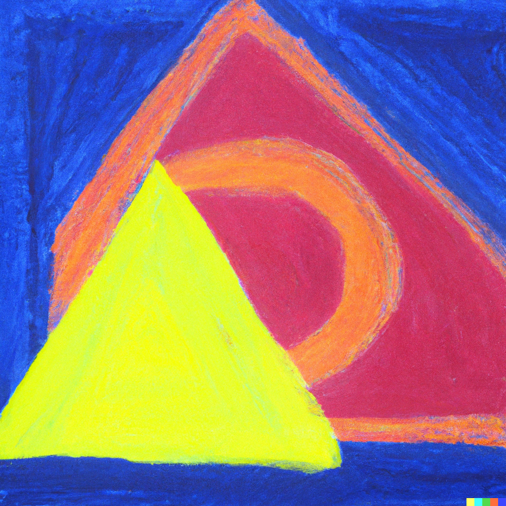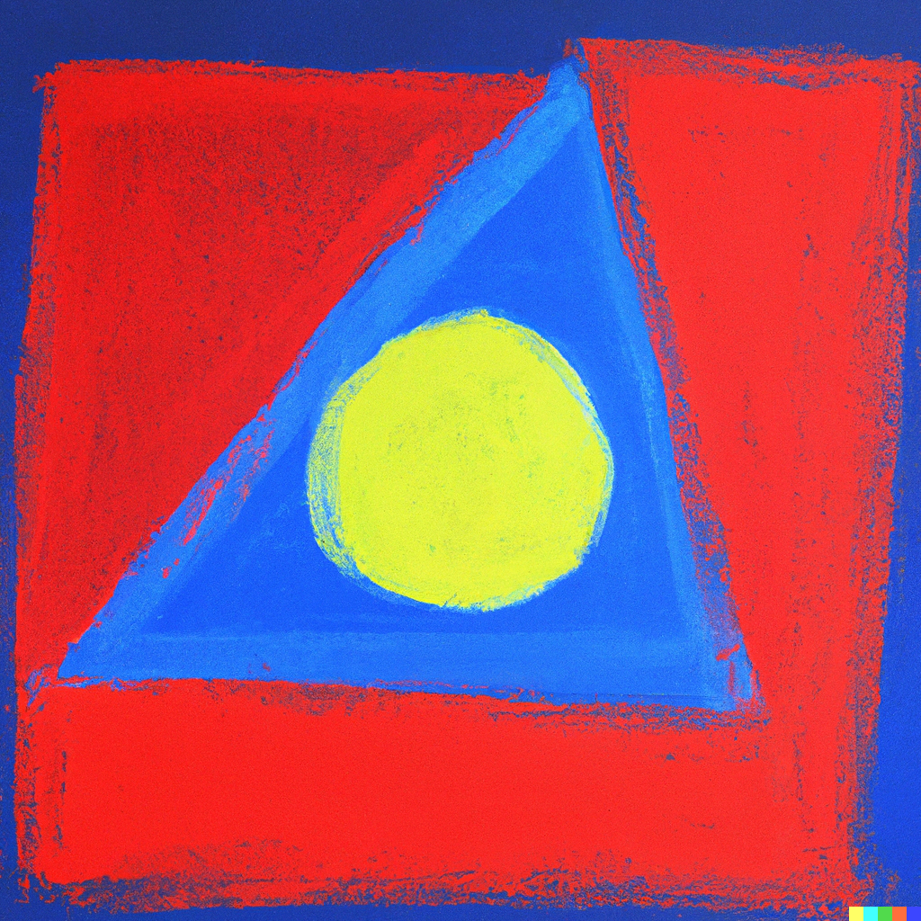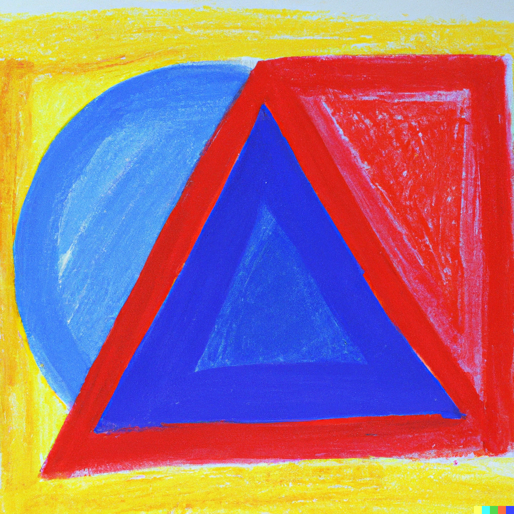 oil pastel sketch of a red triangle, a blue square, and a yellow circle on canvas