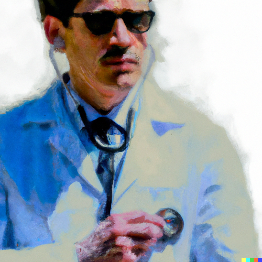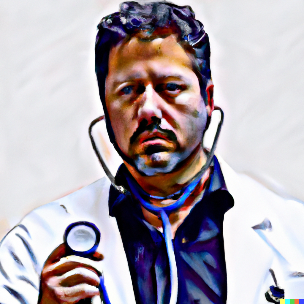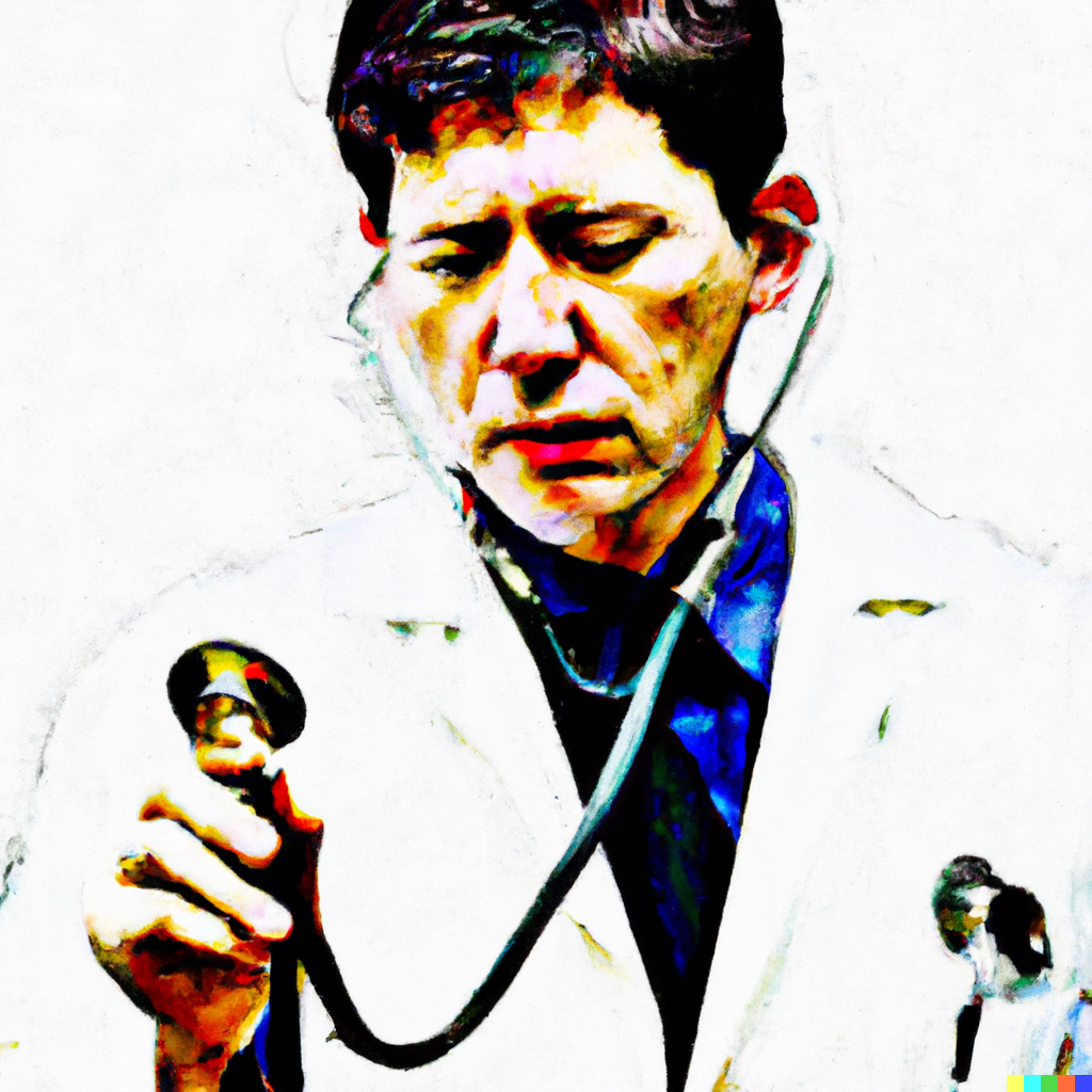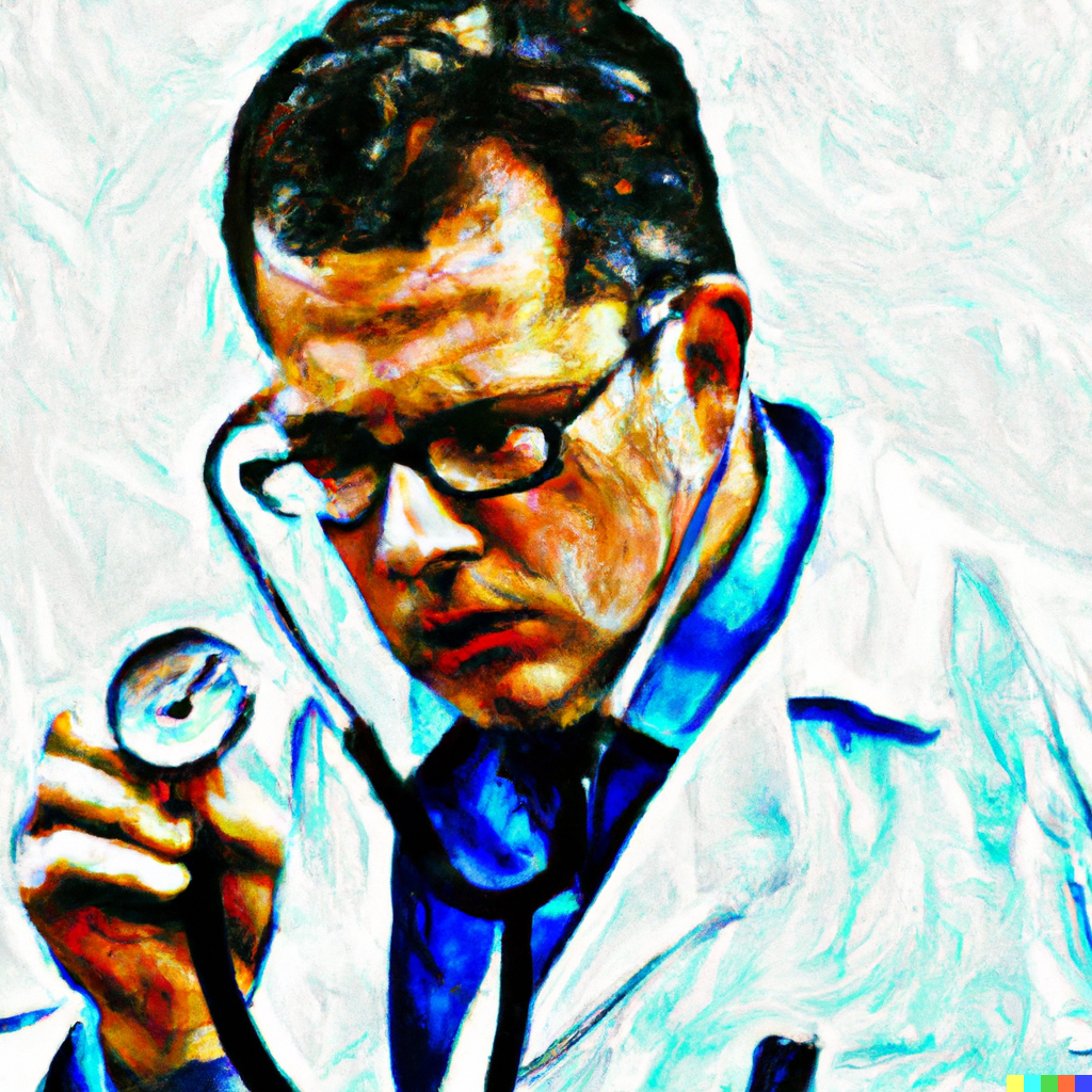 digital art of a doctor using a stethoscope, in the style of van gogh, white background